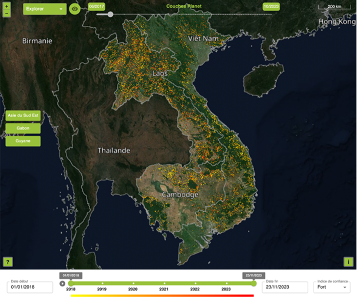 Powered by radar satellite data, the TropiSCO interface provides a near-real-time view of global tropical deforestation. © TropiSCO