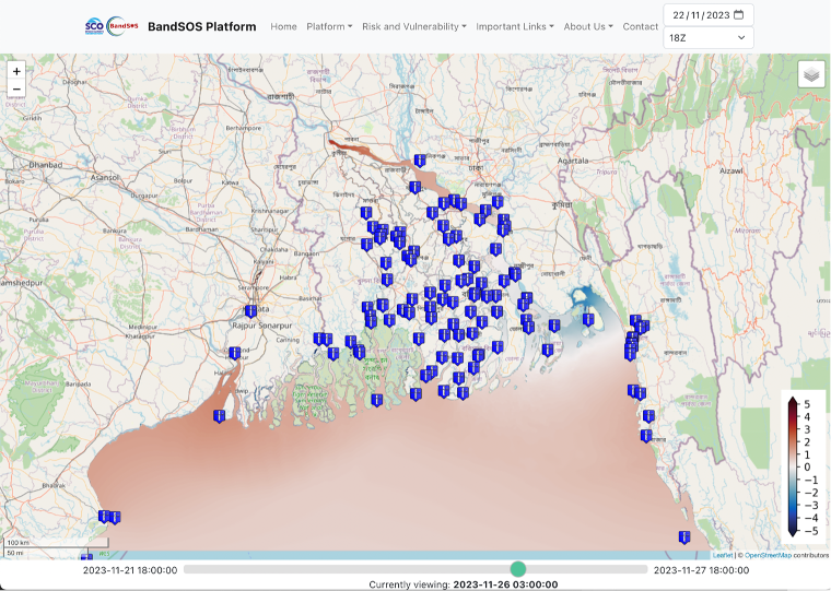 With the BandSOS interface, the Flood Forecasting and Warning Centre in Bangladesh can view water levels in the Bengal Delta in real time, in order to anticipate cyclonic flooding. With open-source code, this solution can be applied anywhere in the world. © BandSOS